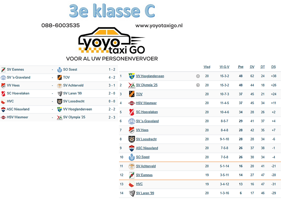 En ze moeten nog tegen elkaar echter is dat pas op 16 mei dus er kan daarvoor nog van alles gebeuren maar dit is mooi. SV Olympia'25 nestelt zich naast Hooglanderveen op de ranglijst.