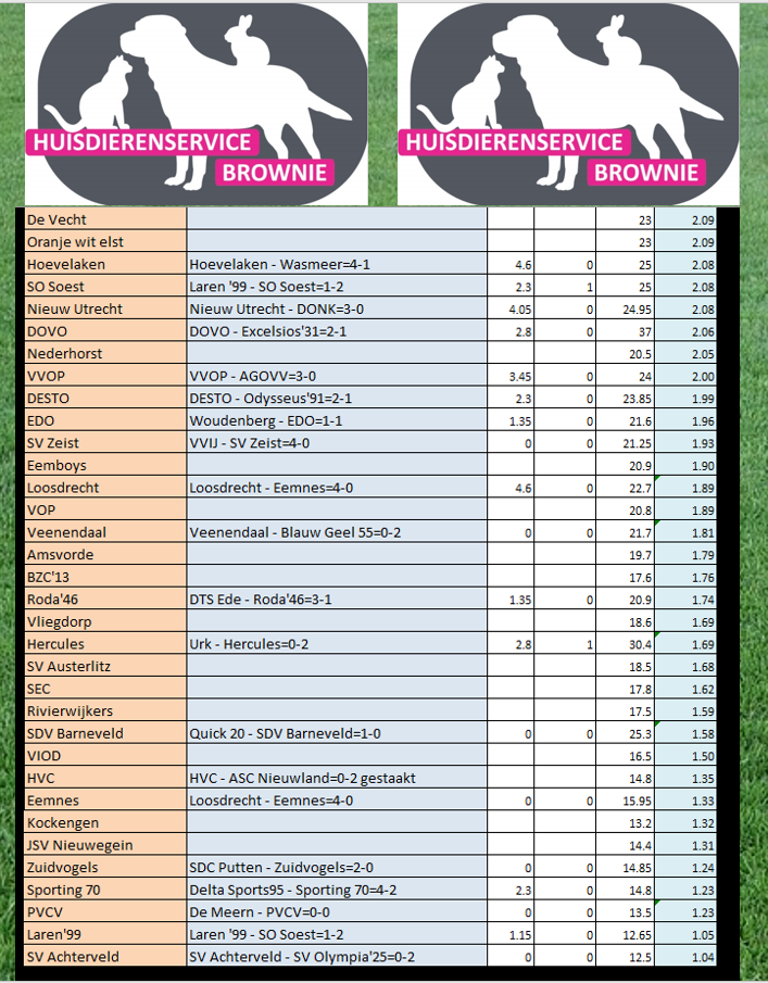 VVZ’49 blijft ook na deze speelronde fier aan kop van het klassement. De ploeg kwam zelf niet in actie, FC Breukelen daarentegen wist dit weekend één keer het net te vinden, zij volgen de koploper nog altijd op korte afstand en houden het zicht op de bovenste plek nadrukkelijk vast.