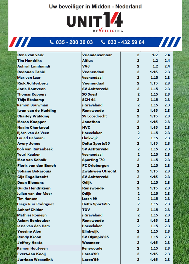 Nou, dát gevoel kun je één op één vergelijken met ons topscorersklassement.