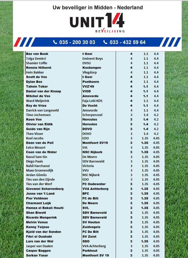 Daar is Gökhan, de man die al seizoenen levert. De heerser van het Zeister Bos, Mo Hazzat, overal en nergens, maar altijd op de juiste plek. De baas van de drooggelegde Zuiderzee die z’n stempel blijft drukken, Tim Klaasen Bos. En alsof dat nog niet genoeg is, Beul Sercan van Eminent Boys, meedogenloos voor elke verdediging, en natuurlijk topscorer aller tijden Lennart, een naam die al lang in steen gebeiteld staat, maar nog altijd hongerig is naar meer.